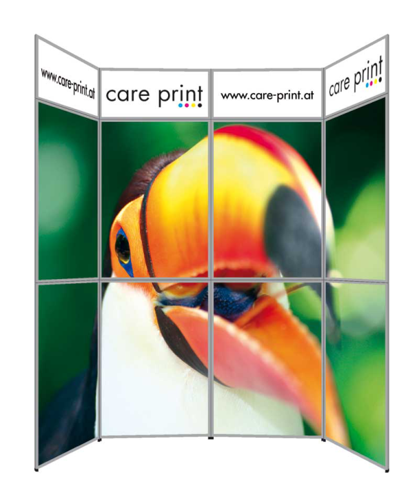 Die Faltwand eigenet sich besonders als Interviewwand, als Raumteiler oder für öfters wechselnde Inhalte. Natürlich gibt es auch eine passende Theke zum Kombinieren dazu. Technische Details und Preise folgen in Kürze!